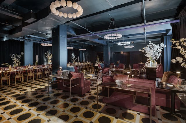 Full event space for 150 guests seated dinner and cocktails